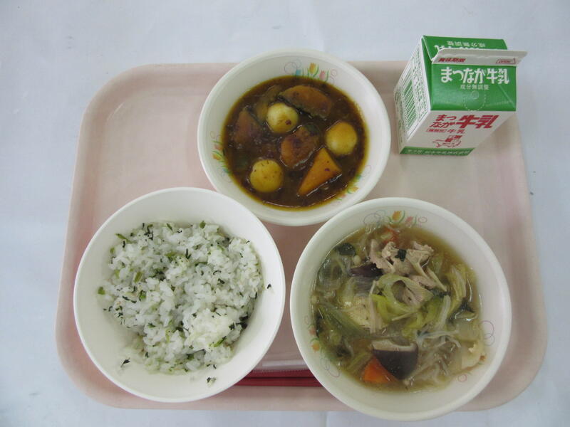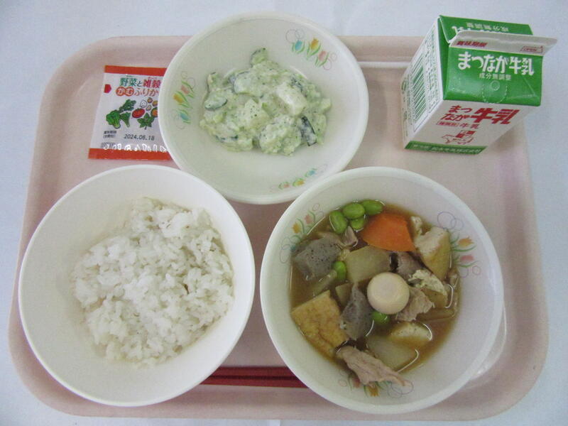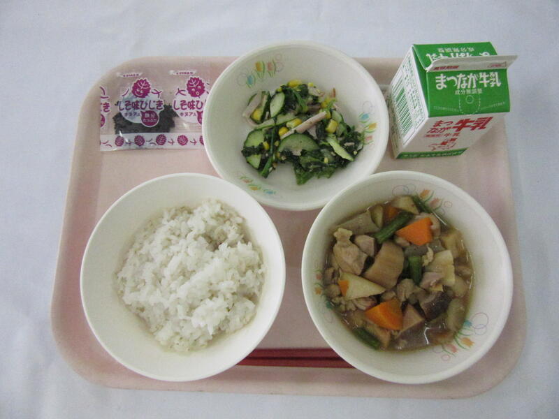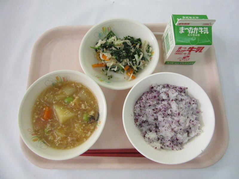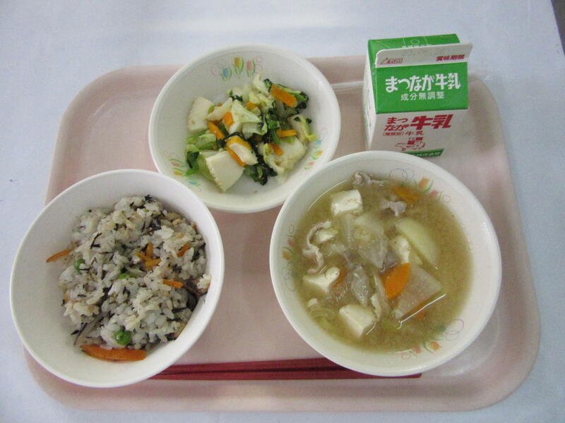6月20日(火)ひじきごはん、牛乳、千草和え、豚汁☆鉄分アップ献立