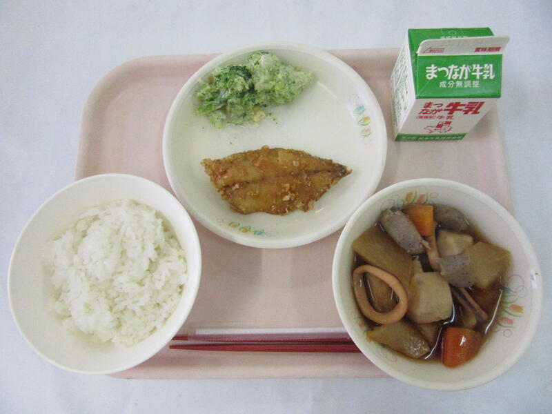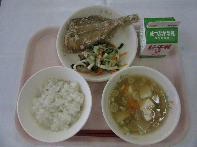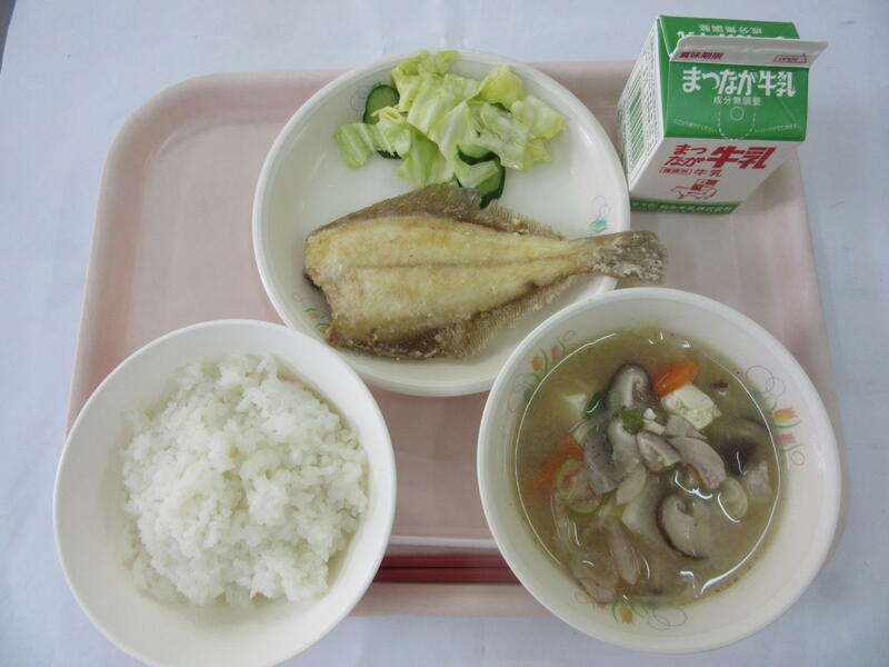 3月5日(火)ごはん、牛乳、小ガレイの唐揚げ、即席漬け、豚汁☆そうまうまうま献立