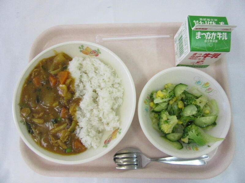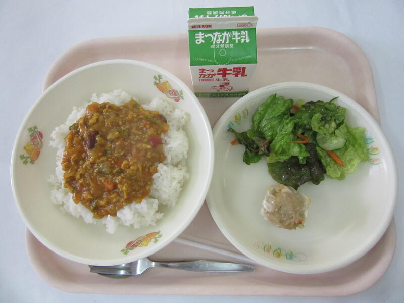 2月9日(金)ドライカレー、牛乳、グリーンサラダ、揚げシュウマイ