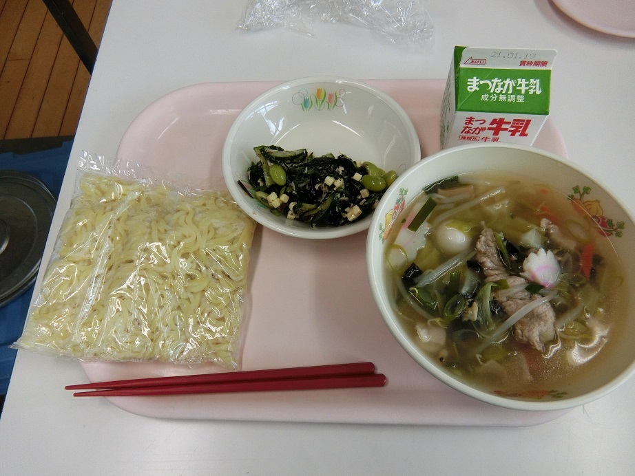 1月27日白河風ラーメン、牛乳、引き菜もち