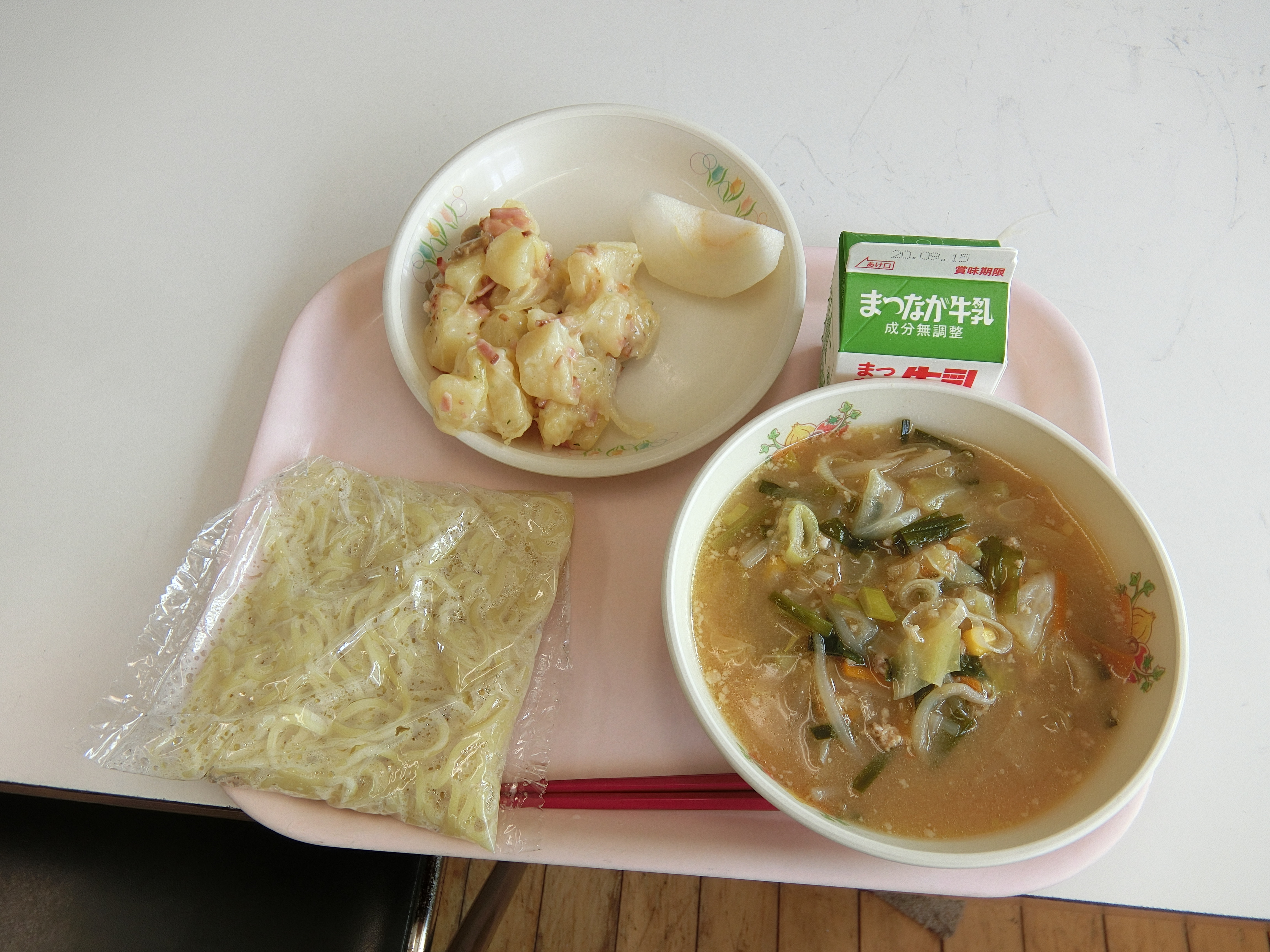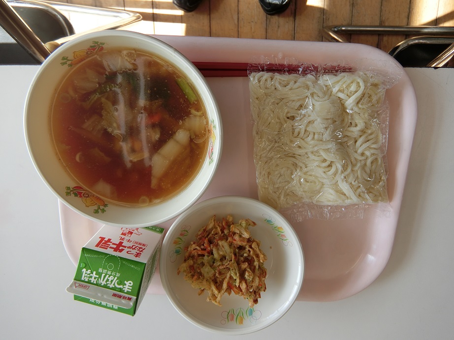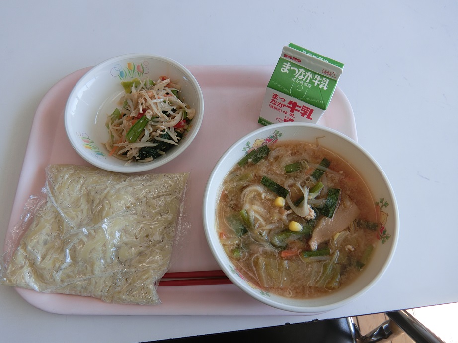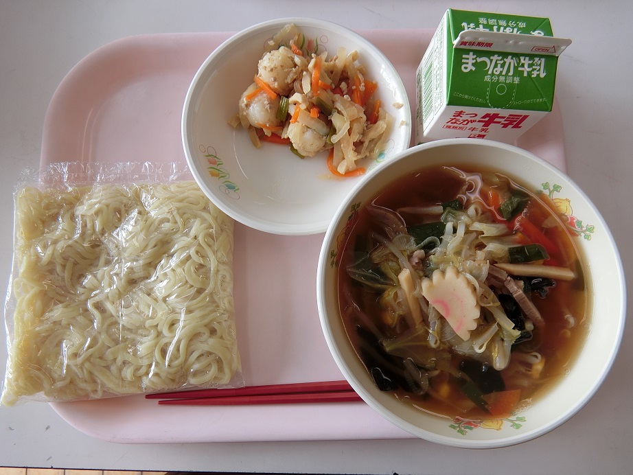 3月10日 カミングさんまる30献立みそラーメン、牛乳、切り干し大根のナムル
