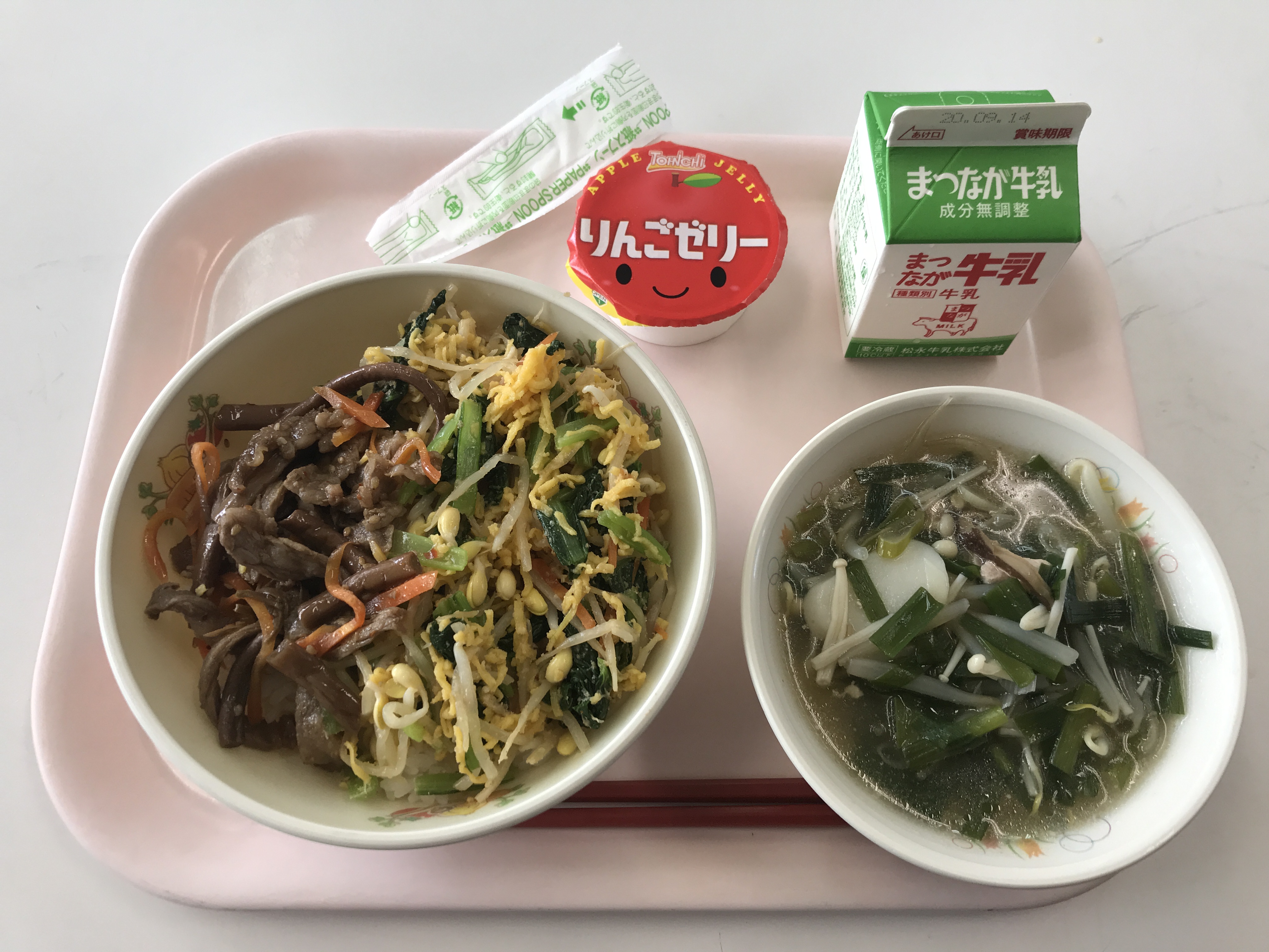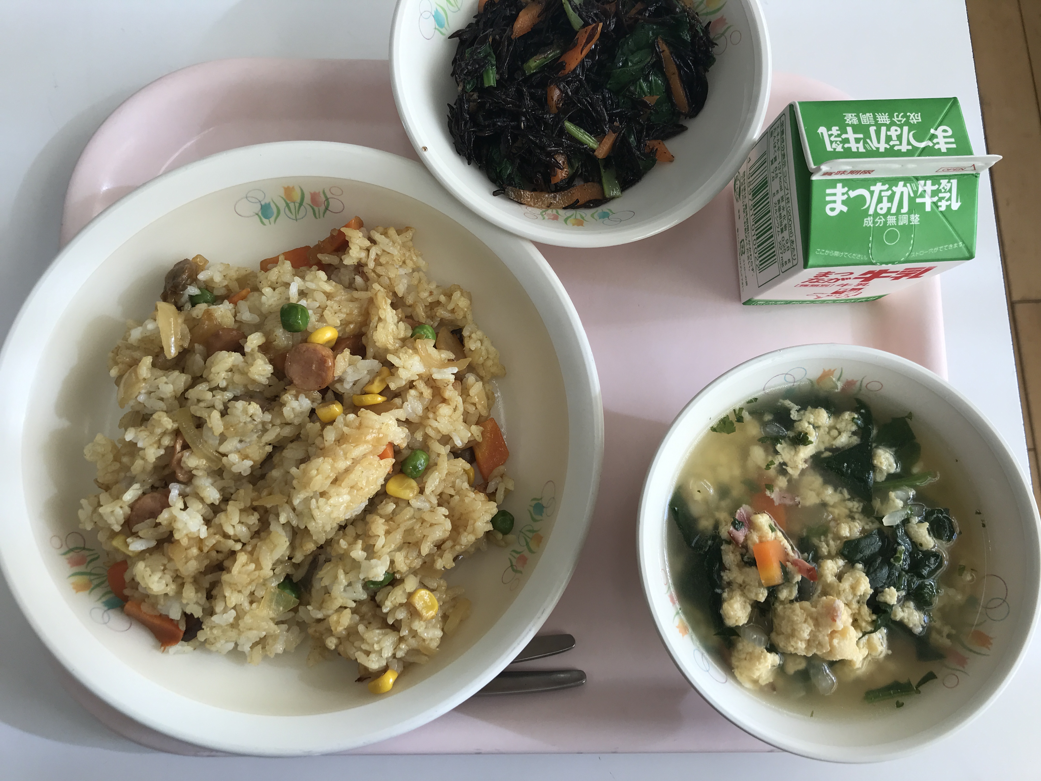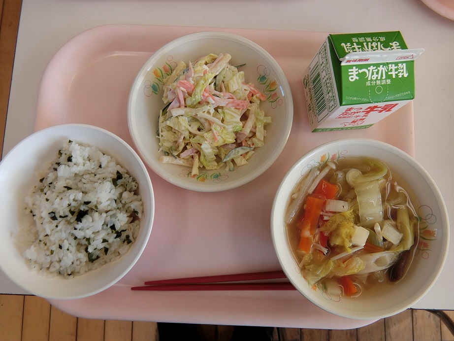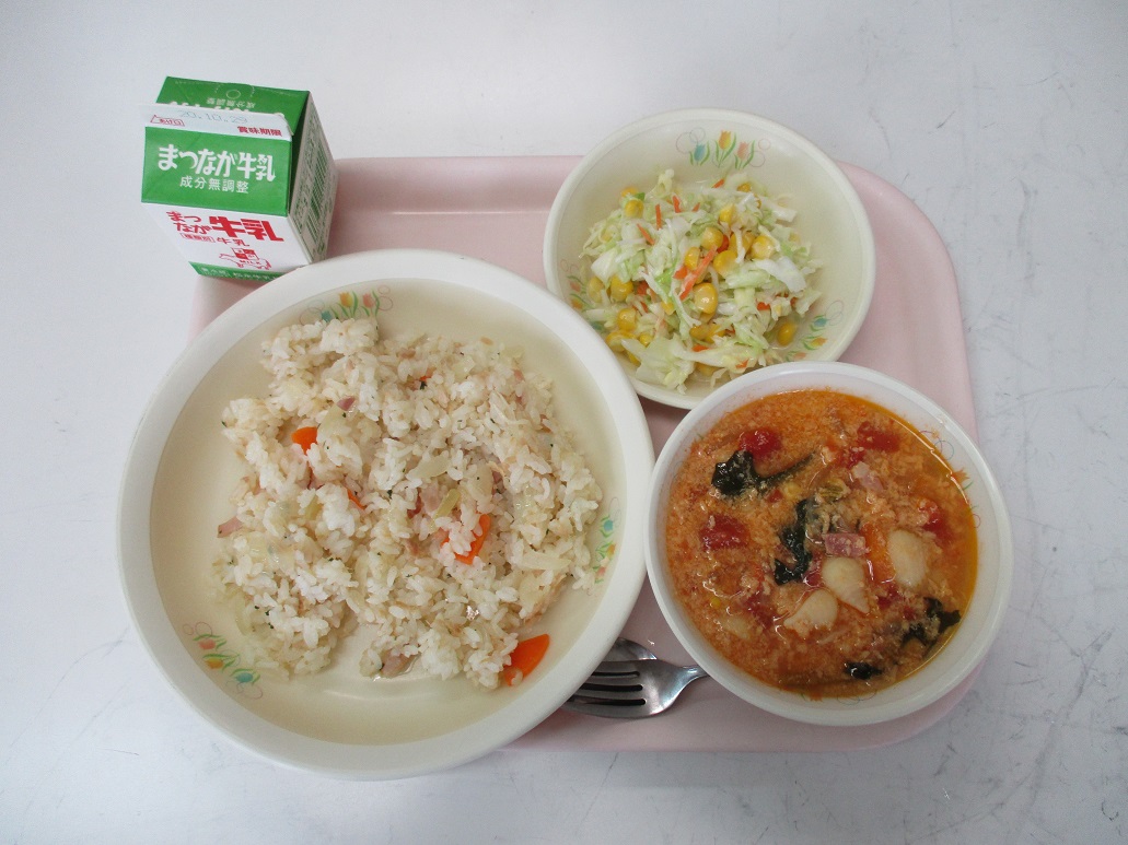 2月26日キムチチャーハン、牛乳、大根サラダ、春雨スープ