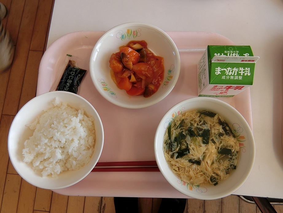 3月9日ごはん、牛乳、酢鶏、にらたま汁、のり佃煮