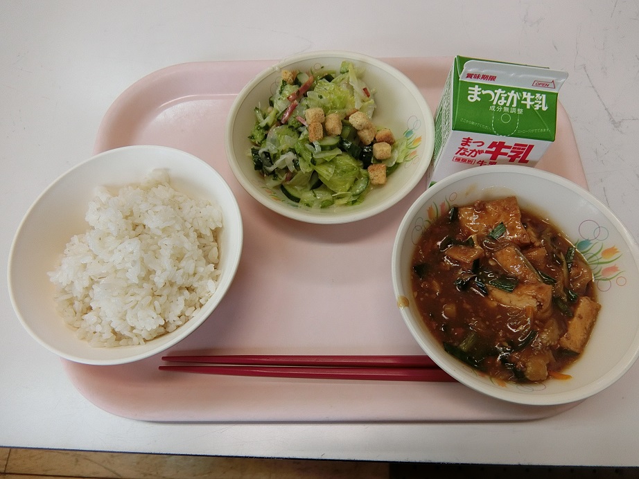 8月31日ごはん、シーザーサラダ、牛乳、マーボーなす