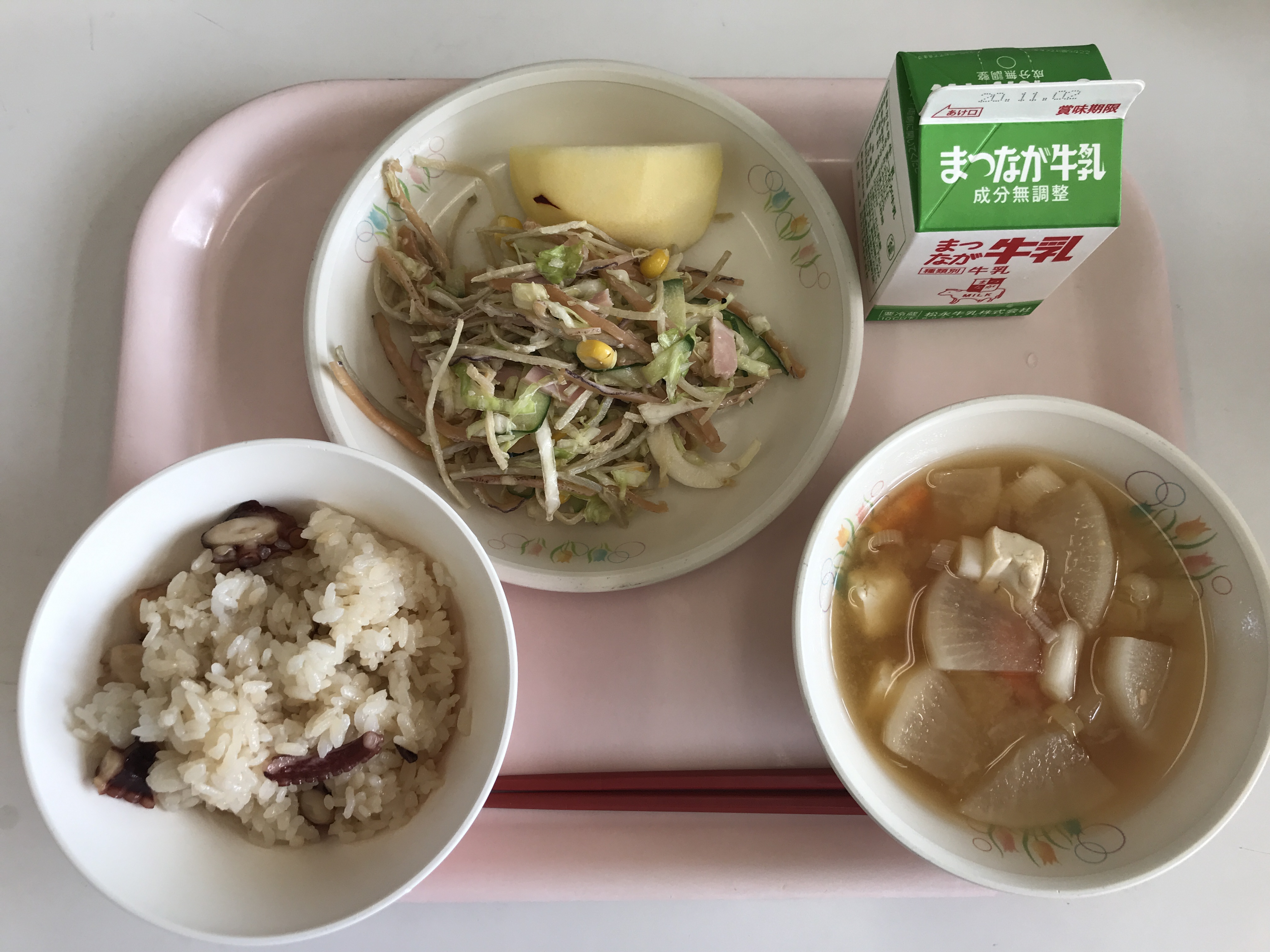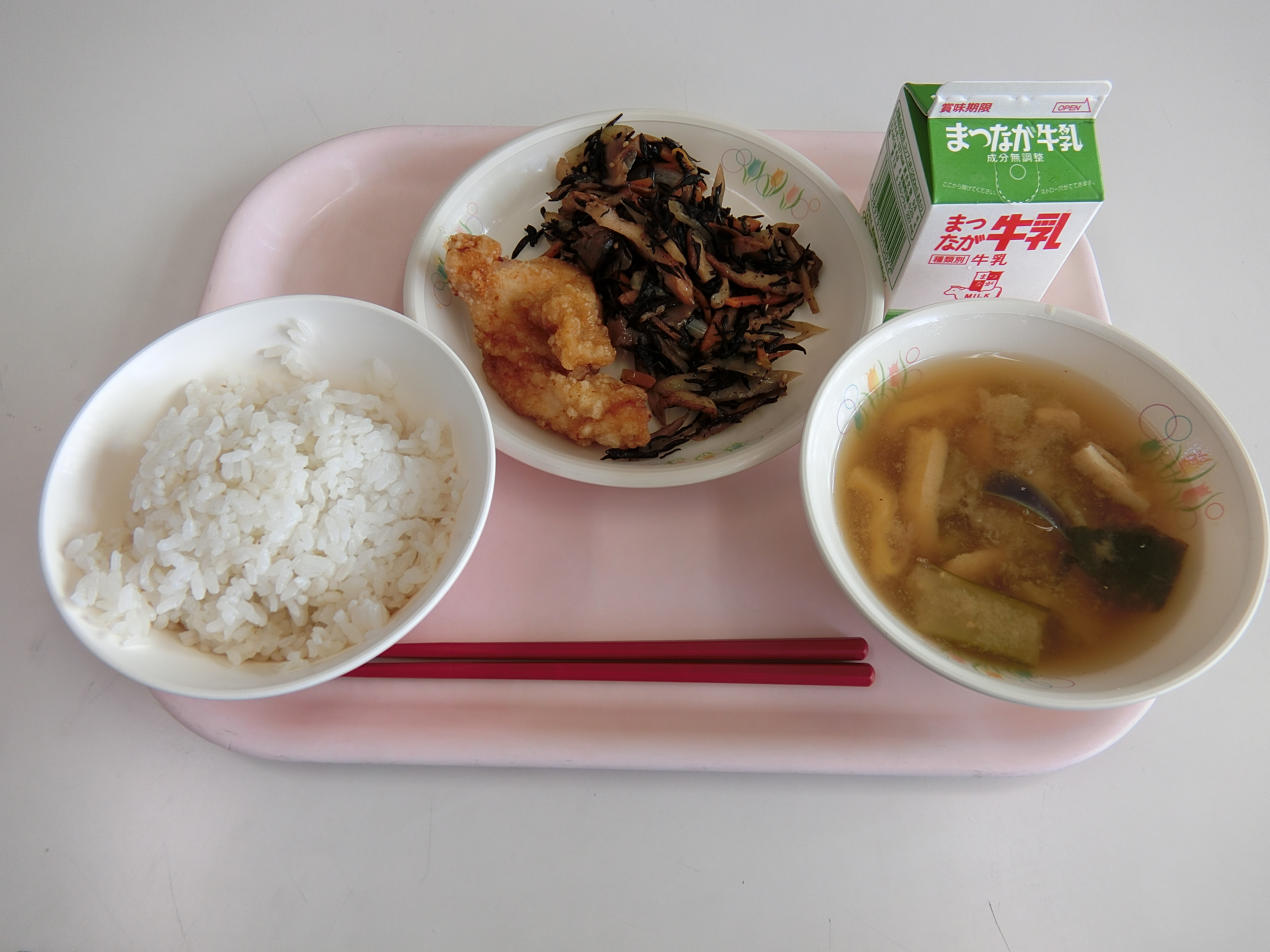 9月7日麦ごはん、牛乳、鶏肉のレモン漬け、ひじきのいため煮、秋なすのみそ汁
