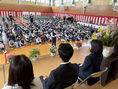 先日、はまなす館で行われた「第27回MOA美術館相馬市児童作品展」の賞状伝達を学校でも行い、全校生に紹介をしました。