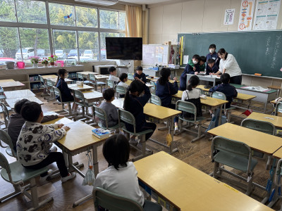 100未満の数をもれなく・重複なく数えられるよう、教科書の朝顔の種のイラストを1つずつチェックをしながら10のまとまりをつくってきます。苦戦しながらも、最後は全員が正しく数えることができました。