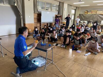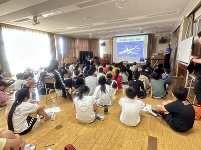 2024年6月26日 14時28分今年も、IHIから武田泰彦 様と長野哲也 様が来校して6年生に話をしてくださいました。初めに武田様がお話しくださいました。IHIがどんな会社で、どんなことをしているかについて説明をしてくださいました。さらには、子どもたちに事前アンケートにもお答えくださいました。例えば、会社の目標ついては、「存続と発展」であり、そのために「従業員を大切にすること」「お客様の信頼を勝ち取ること」「飛行機に乗る客様の安全を守ること」とお答えいただきました。