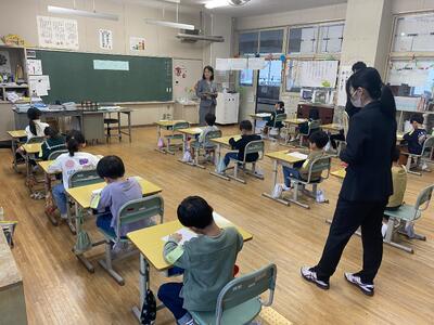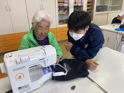 相馬市の学びのサポートボランティア「阿部 敏 様」が、9月26日に引き続いて来てくださいました。ありがたいことに、授業前に来校してミシンの準備もしてくださってのサポートでした。今月は、各学級3回ずつで合計9回もサポートくださることになっています。