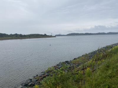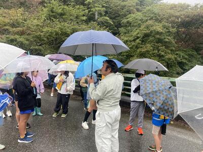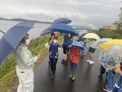 この日は、宇田川の様子を見学しました。あいにくの雨でしたが、上流の山上落合のあたりと河口の岩の子の辺りを見てきました。