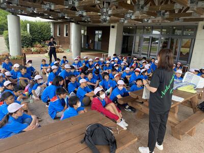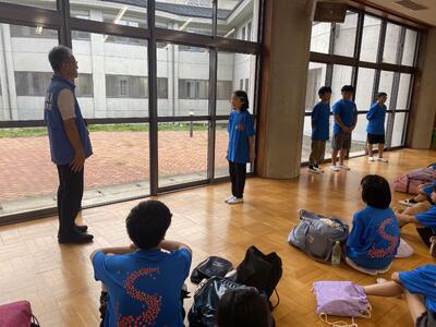 はじめに、代表児童が、「安全に活動し、ルールを守り、時間を見て5分前行動をします。友達と協力して自然のことについて学び、楽しい宿泊学習にします。2日間よろしくお願いします。」と伝えました。