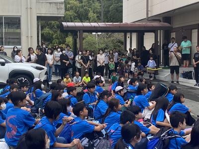 代表児童の挨拶では、今回の宿泊学習は、みなさんのおかけでとてもいい思い出になりました。小学校では一度しかない宿泊学習にご協力くださりありがとうございます。この2日間で学んだことを今後の学校生活に生かします。2日間ありがとうごさいました。
