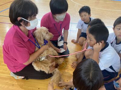 はじめに獣医師の先生から、犬となかよくなるために、「目の前を走らない」「大きな声を出さない」などの基本的なこと、355の犬種があって犬種によってそれぞれに好きなことが違い、その好きなことに合わせて仕事をしてきたこと、特性に合わせて人間の手助けをしてきてくれたことを教えていただきました。