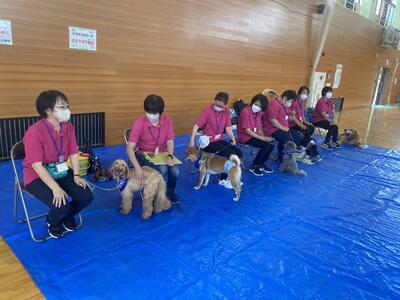 福島県動物愛護センターから、担当の方と獣医師、しっぽの会というボランティアの方が7人とゴールデンレトリバー・キャバリアキングチャールズスパニエル・トイプードル・柴犬・オーストラリアンラブラドゥードルの4頭のわんちゃんが来てくださいました。