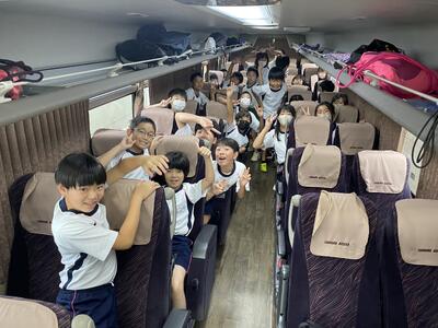 7時30分の出発に合わせ、全員早めに登校してくれました。これからの活動に期待してくれているのを感じました。ただ、朝が早かったので眠そうで、まだエンジンがかかっていない感じです。2日間、子どもたちの安全を第一に、パワーアップ・レベルアップをサポートしていきます。