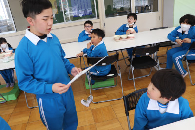 先日、児童会代表委員が全校生を対象に「赤い羽根共同募金」活動を行いました。