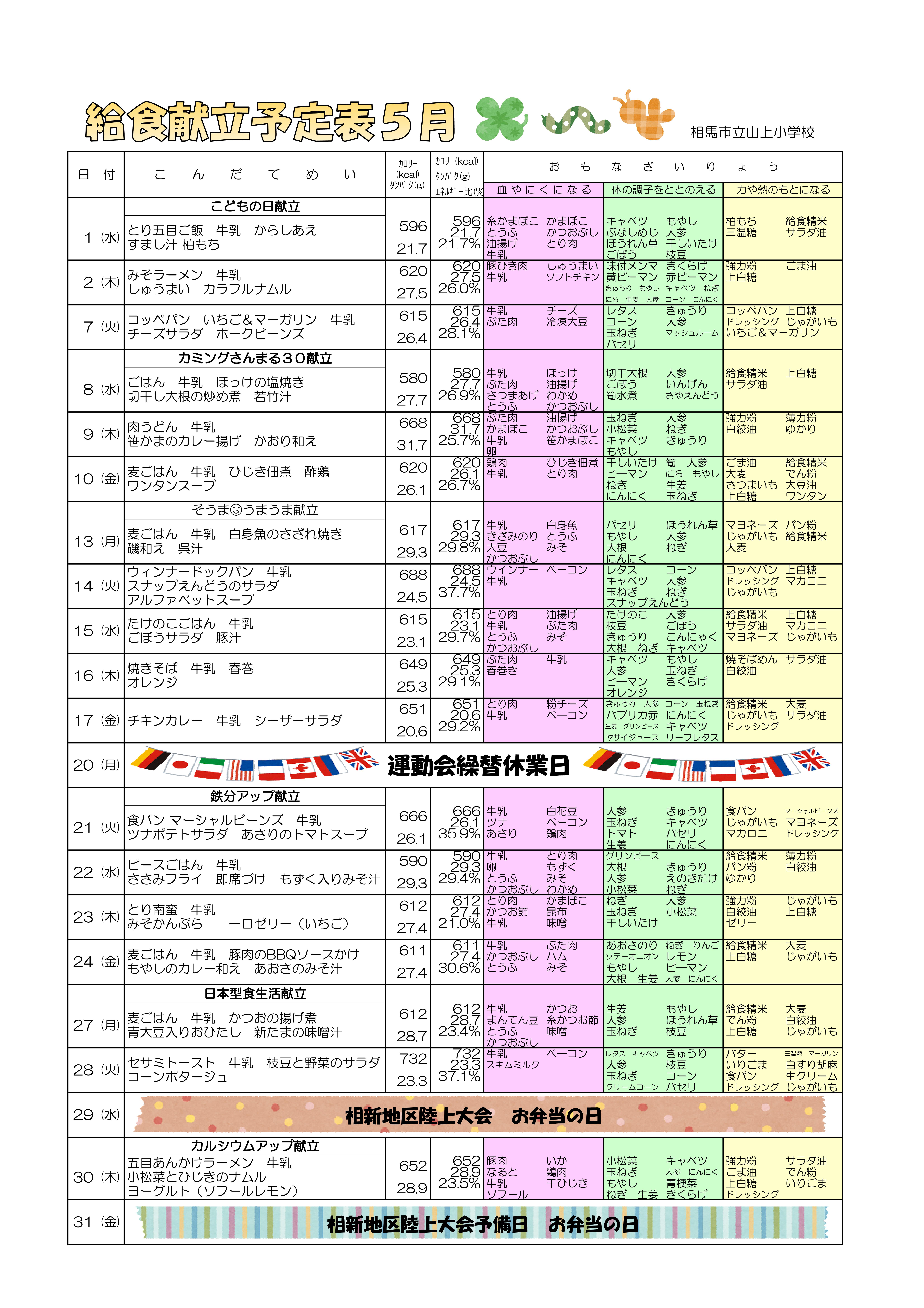 給食献立予定表5月