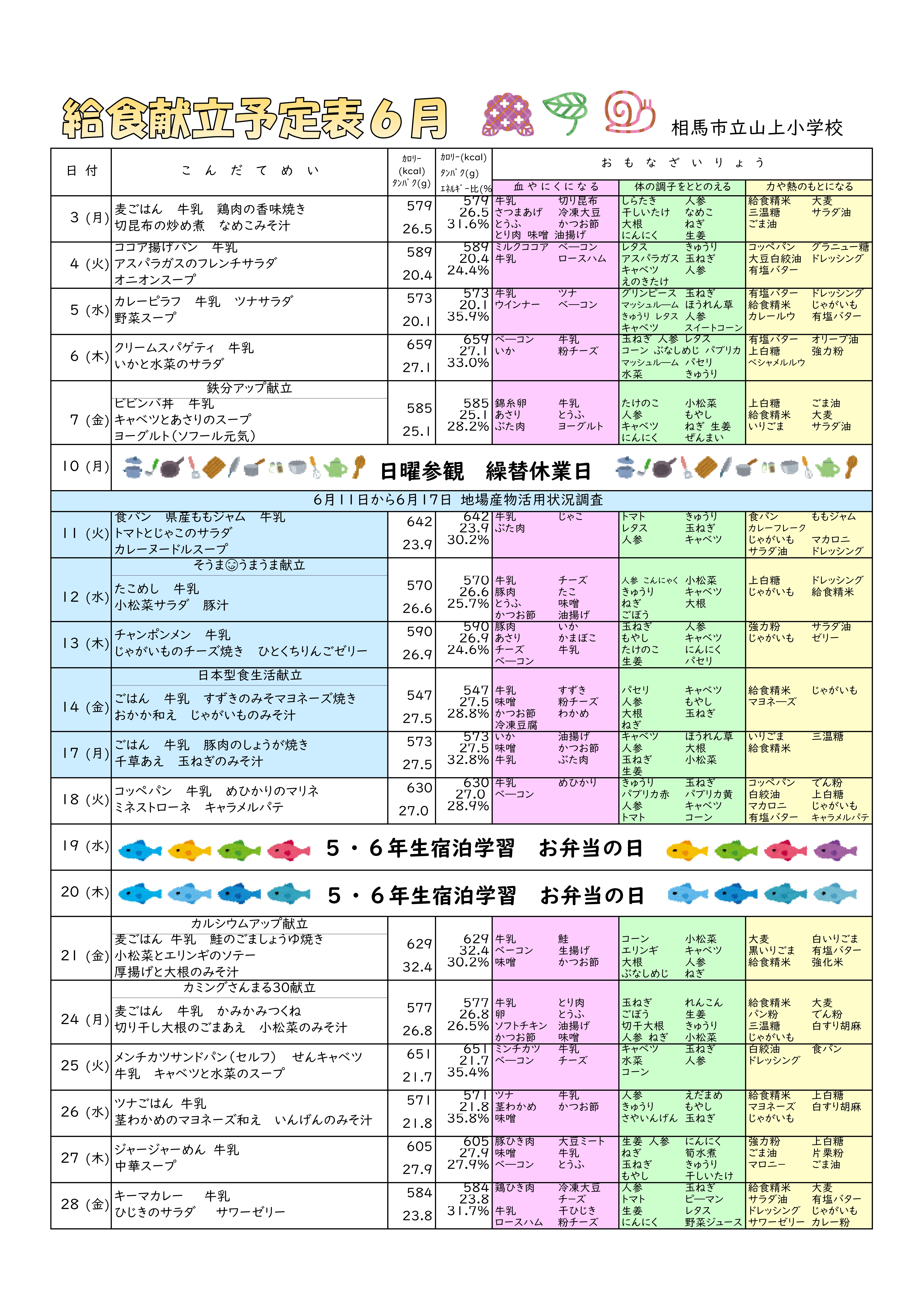 給食献立予定表6月