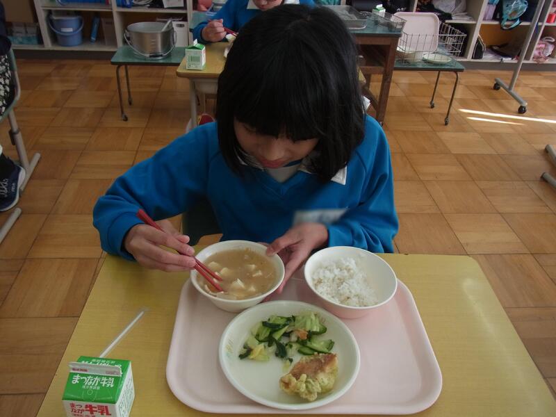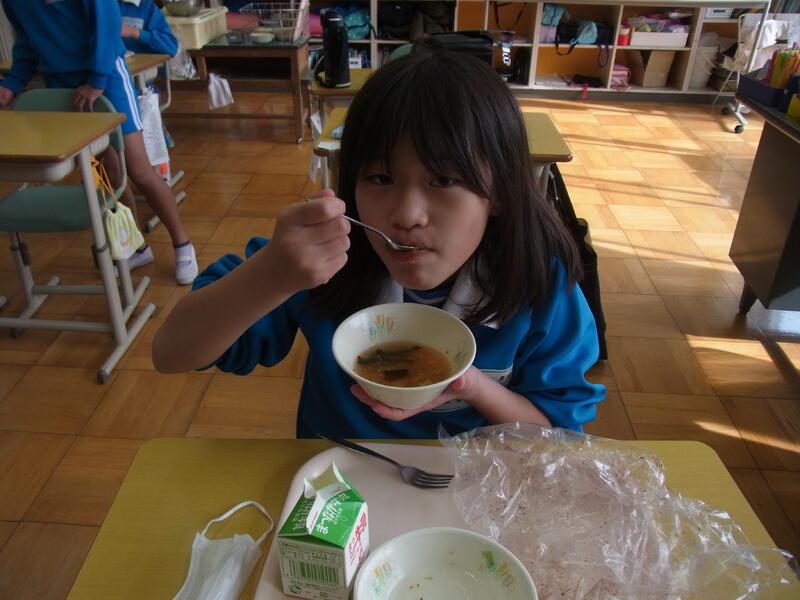今日は一段と寒かったので、温かい給食で体が温まったようです。