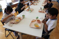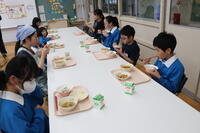 ランチルームで食べていた2~6年生は、1年生がいなくて寂しかったのか、いつもより静かな給食の時間でした。