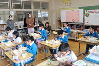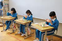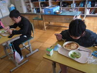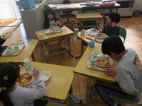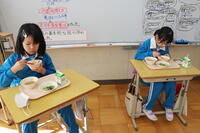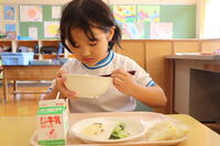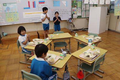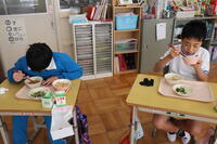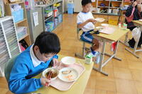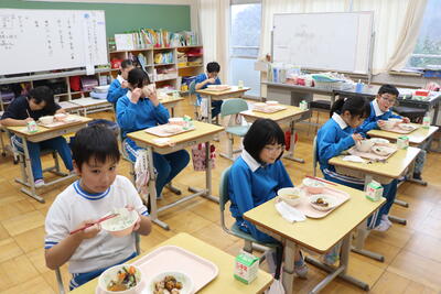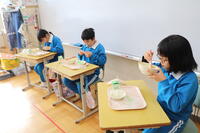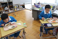 1・2年生教室では、ちょうど「いただきます」をしたところでした。