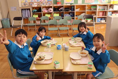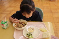 1年生も、完食できることが多くなってきました。今日は体育で跳び箱を頑張ったので、お腹もペコペコだったようです。