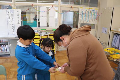 3・4年教室では、お正月に食べたお餅の話をしていました。