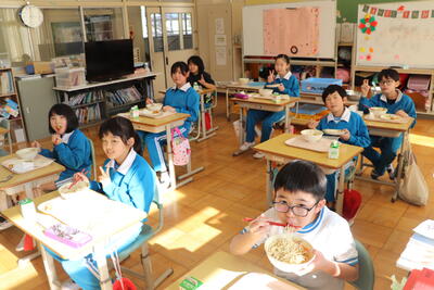 2学期最後の給食でしたが、どの教室も味わって食べていました。