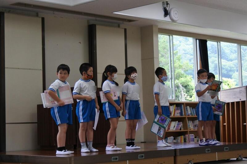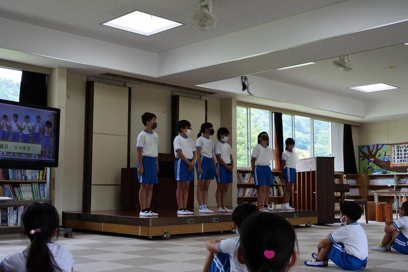 2021年7月14日 15時04分13日(火)に、全校集会を行いました。今回は、1年生から6年生まで「1学期のふり返り(反省)と夏休みのめあて」を発表しました。緊張しドキドキしていたようですが、胸を張って、自分の思いを発表することができました。