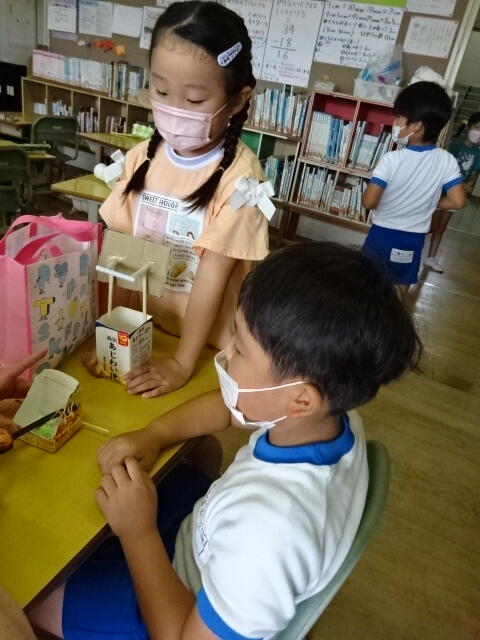 2年生は、自分たちで工夫して作ったもので、1年生が楽しく遊んでくれて大満足でした。