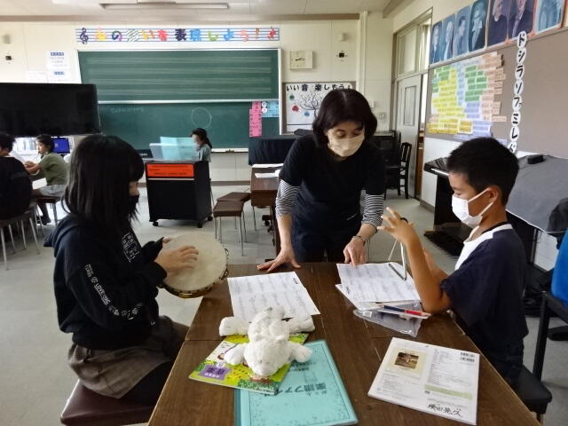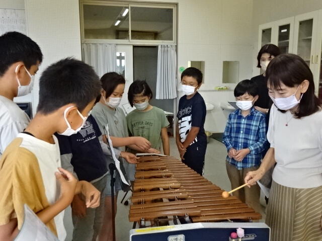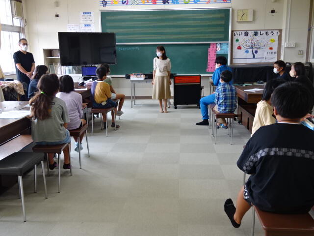相新音楽祭に向けての練習にあたり、まず「合奏」とは、合わせて奏でるということを教えていただき、子どもたちは真剣に話を聞いていました。