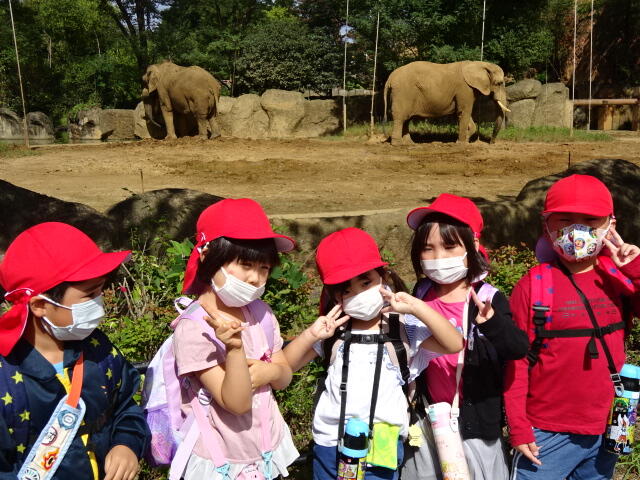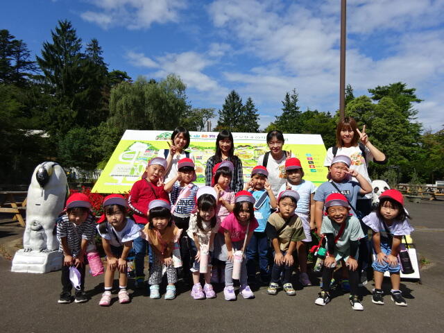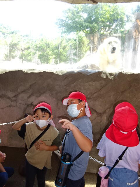 日立木幼稚園の友達と一緒にバスに乗って、八木山動物公園に行きました。