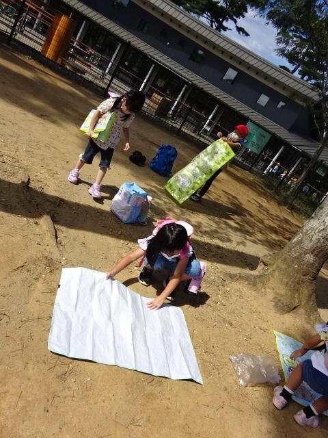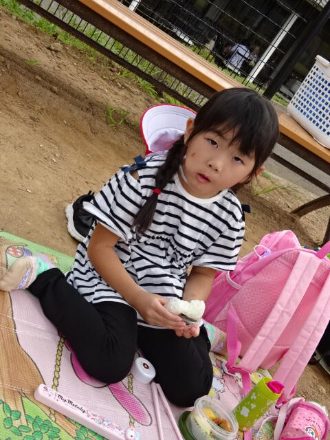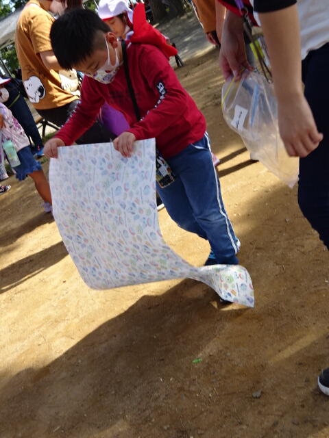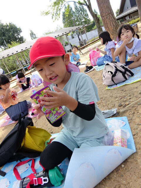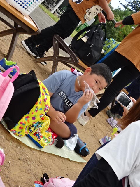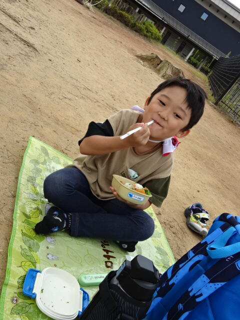 お弁当とおやつを食べた後は、自分でシートを片付けました。
