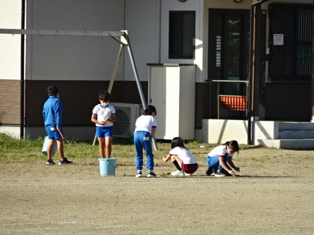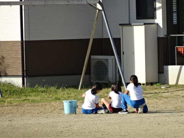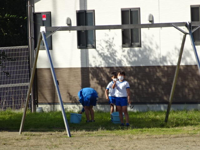 2年生の子どもたちの何人かが、ボランティアとして除草活動をしていました。