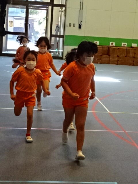 体育館では、「だるまさんが転んだ」や鬼ごっこをして遊んでいました。6年生を中心に、鬼はだれがやるか、どこで遊ぶかなど、遊びのルールをみんなで話し合いながら遊ぶことができました。