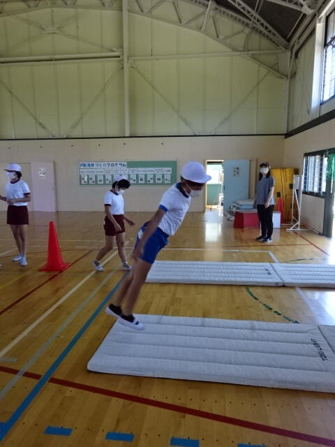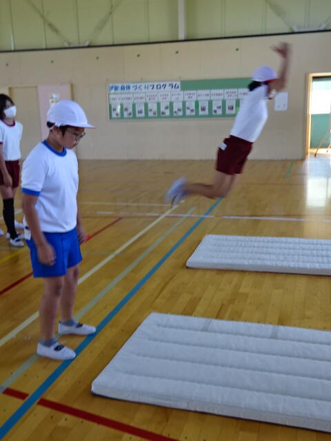 腕やひざを上手に使って、なるべく遠くに跳ぶように挑戦しました。