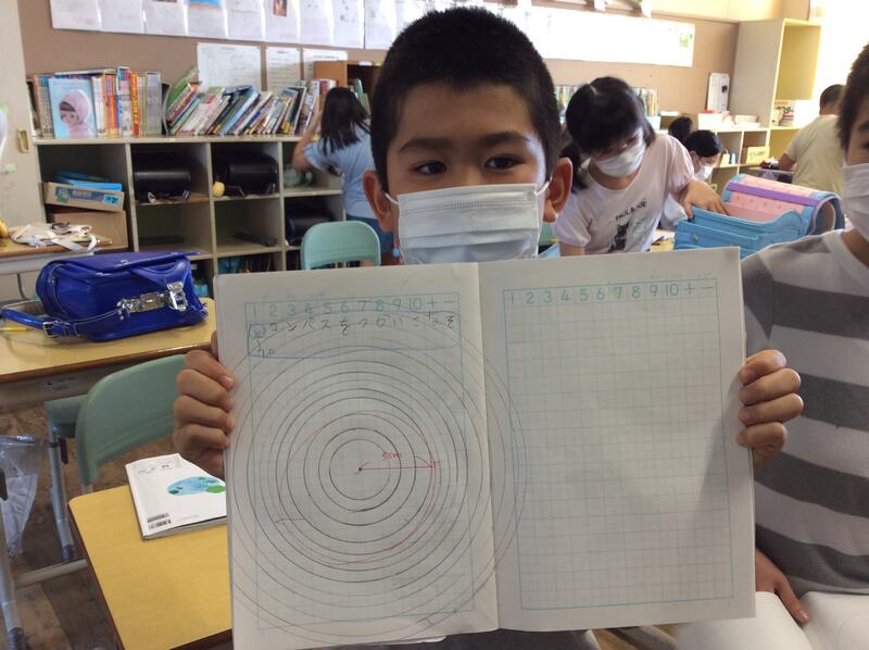 ぜひお家でも、自主学習などでコンパスで円をかく練習をしてほしいと思います。やればやるほど上手にかけるようになるはずです。