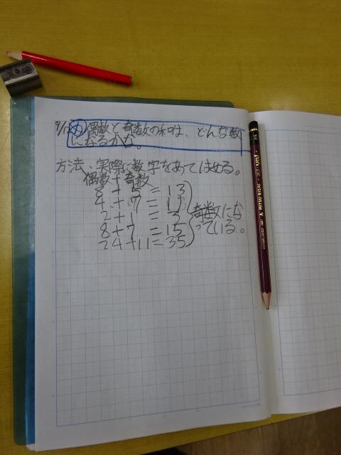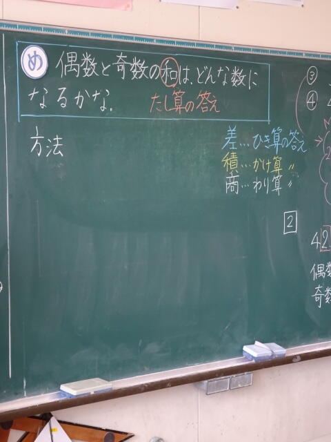 いくつかの数を当てはめてみることで、偶数と奇数の和は、奇数になることがわかったようです。