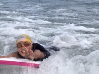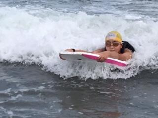 だんだん慣れてきて、波に上手に乗って楽しんでいます。