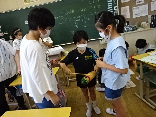 教科書や動画を見ながら楽器の演奏の仕方も学習しました。