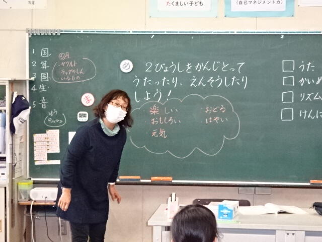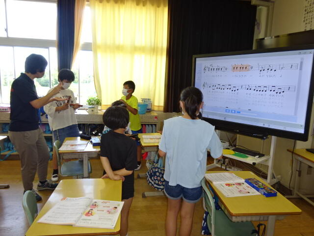 この後、鍵盤ハーモニカで演奏するために、階名で歌う練習もしました。
