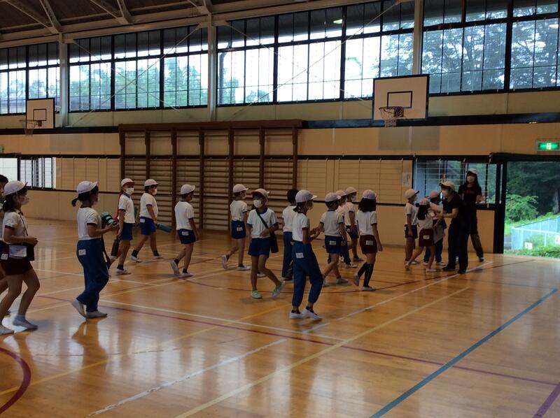 本日2校時目の業間に、園児や児童への訓練予告をしない「避難訓練」を行いました。震度6強の地震が発生した想定で行いました。雨が降っていたため、教室で過ごしていた児童がほとんどでしたが、落ち着いて体育館へ避難することができました。