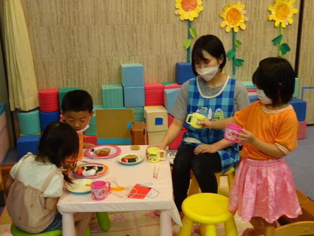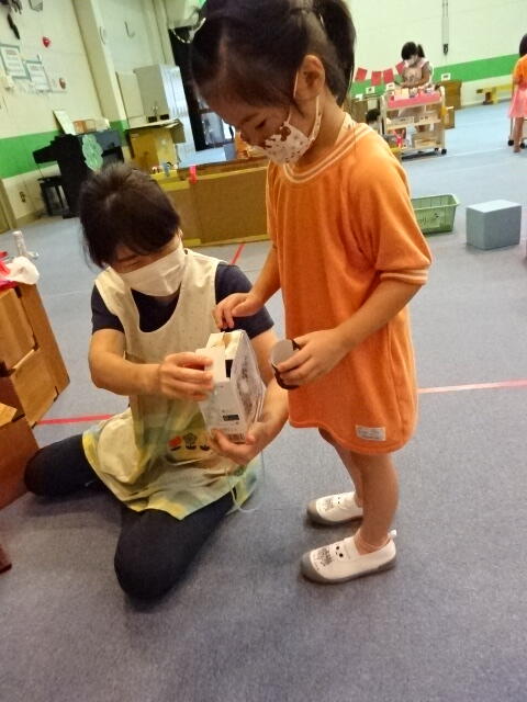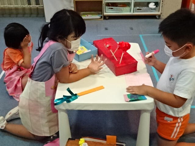 幼稚園の子どもたちが縁日ごっこをして楽しく遊びました。