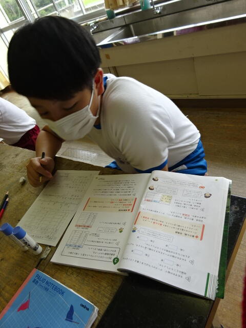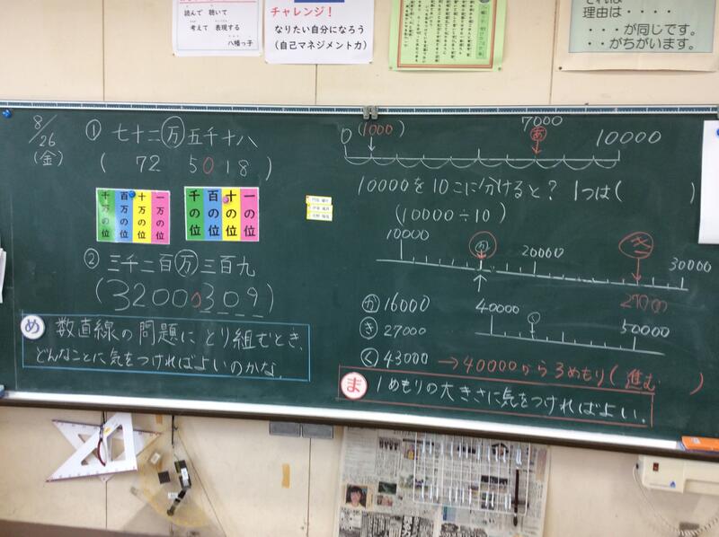 3年生の算数の授業の様子です。「10000より大きい数」の学習で、初めて数直線について学習しました。数直線の問題に取り組むときは、1めもりの大きさに気をつければよいことを学びました。
