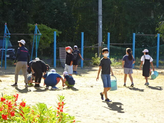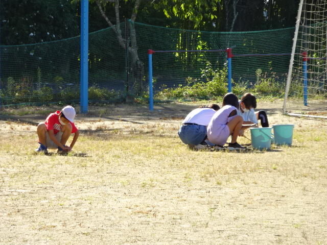 今日の朝も、子どもたちは校庭に出て草むしりをしてくれました。