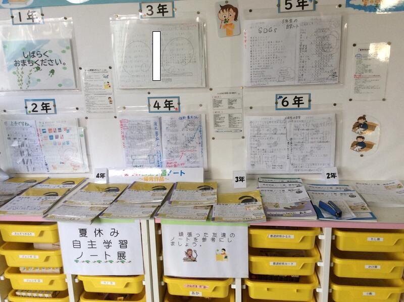 この他にも、算数の計算にしぼって毎回取り組んだノート、化石について調べたノート、手作りのお弁当を日記形式でまとめたノートなど、夏休みならではの自主学習ノートがたくさんありました。保護者の皆様のお声がけや温かいコメントなどのご協力、ありがとうございました。