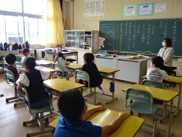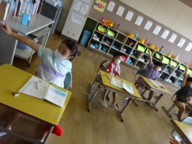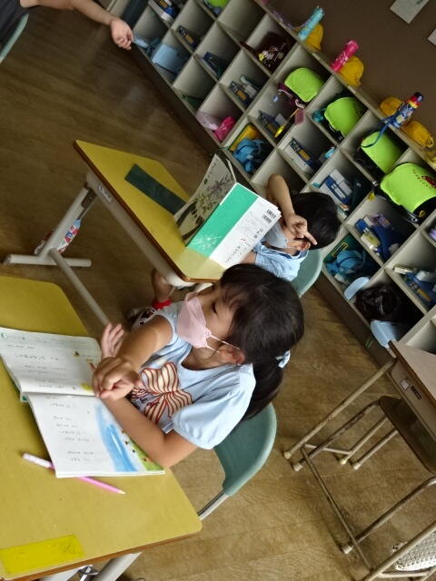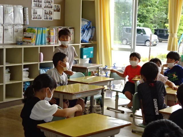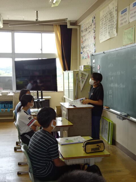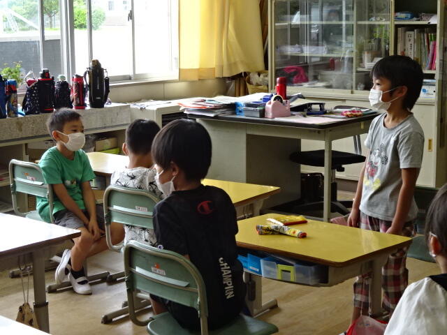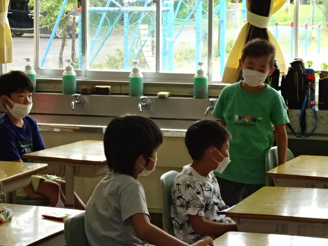 子どもたちは、お互いに質問をしながら、夏休みの思い出を友達に紹介していました。