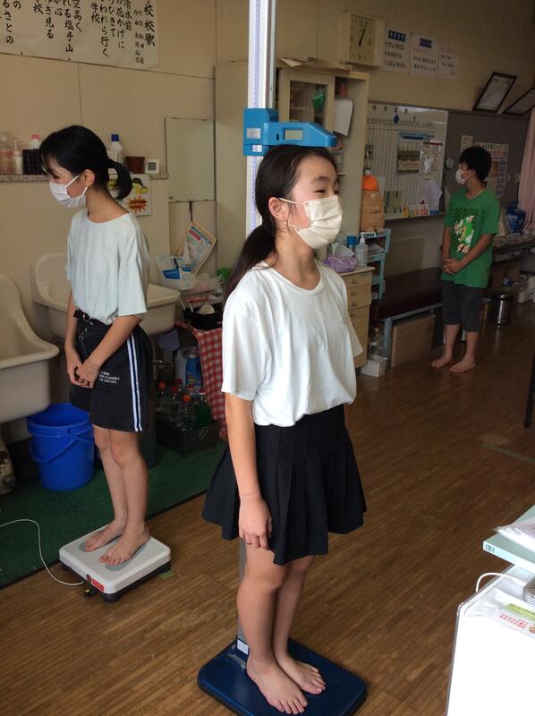 本日、1~6年生の身体測定を行いました。子どもたちは、自分の身長がどれくらい伸びたのか気になる様子でした。ごはんをしっかり食べて、夜はたくさん眠って、丈夫な身体を作ってほしいと思います。全児童の測定が終わり次第、健康の記録を配付します。ぜひご家庭でご覧になってください。