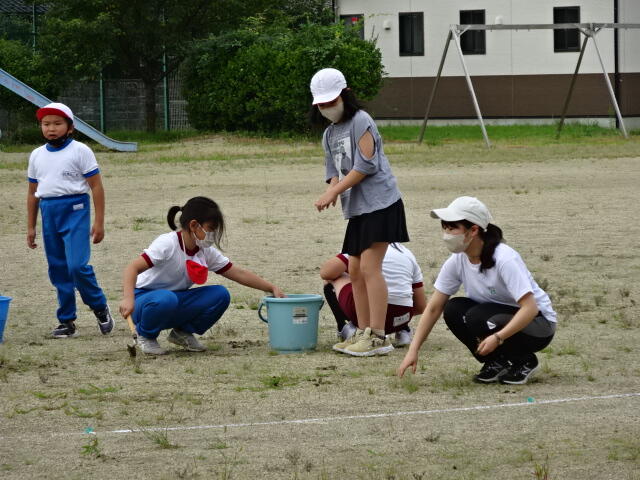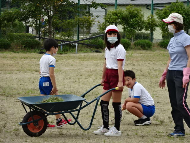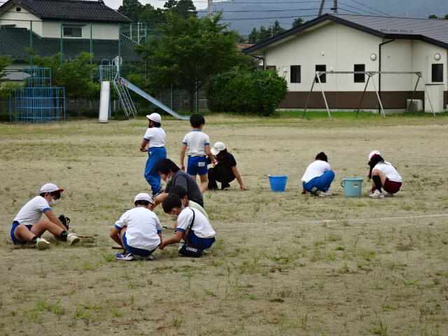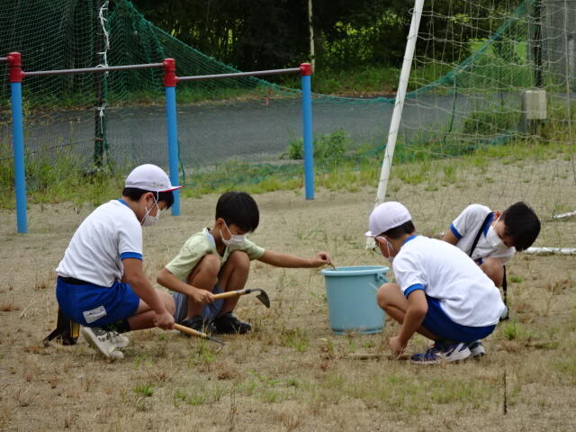 夏休みに増えてしまった校庭や花壇の草を朝の奉仕活動で抜いています。