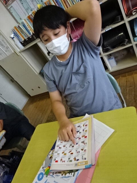 その後、子どもたちは教科書に書かれている国の中から、英語指導員とALTが言った国を探しました。